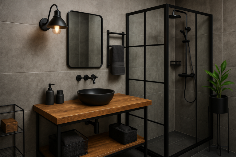 Forma akcesoriów w stylu loftowym powinna być oszczędna. Wszystkie elementy muszą wpisywać się w konsekwentny język geometrii: prostokąty, cienkie ramy, proste kąty, surowa linia. Ten porządek formalny spotykany jest w wielu wnętrzach industrialnych, co dobrze ilustruje analiza mebli typu loft. Dodatki łazienkowe, które powtarzają ten charakter — pojemniki, koszyki, organizery — stają się integralną częścią estetyki.