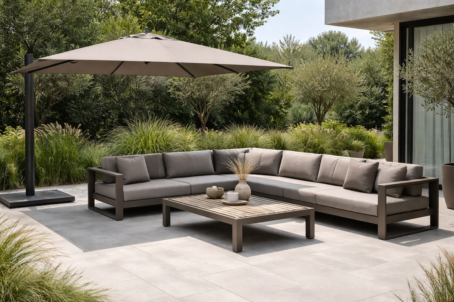Komplet ogrodowy powinien być dopasowany do wielkości tarasu oraz architektury budynku. W większych ogrodach dobrze sprawdzają się rozbudowane zestawy modułowe, które można logicznie podzielić na strefy, zachowując przy tym spójność wizualną.